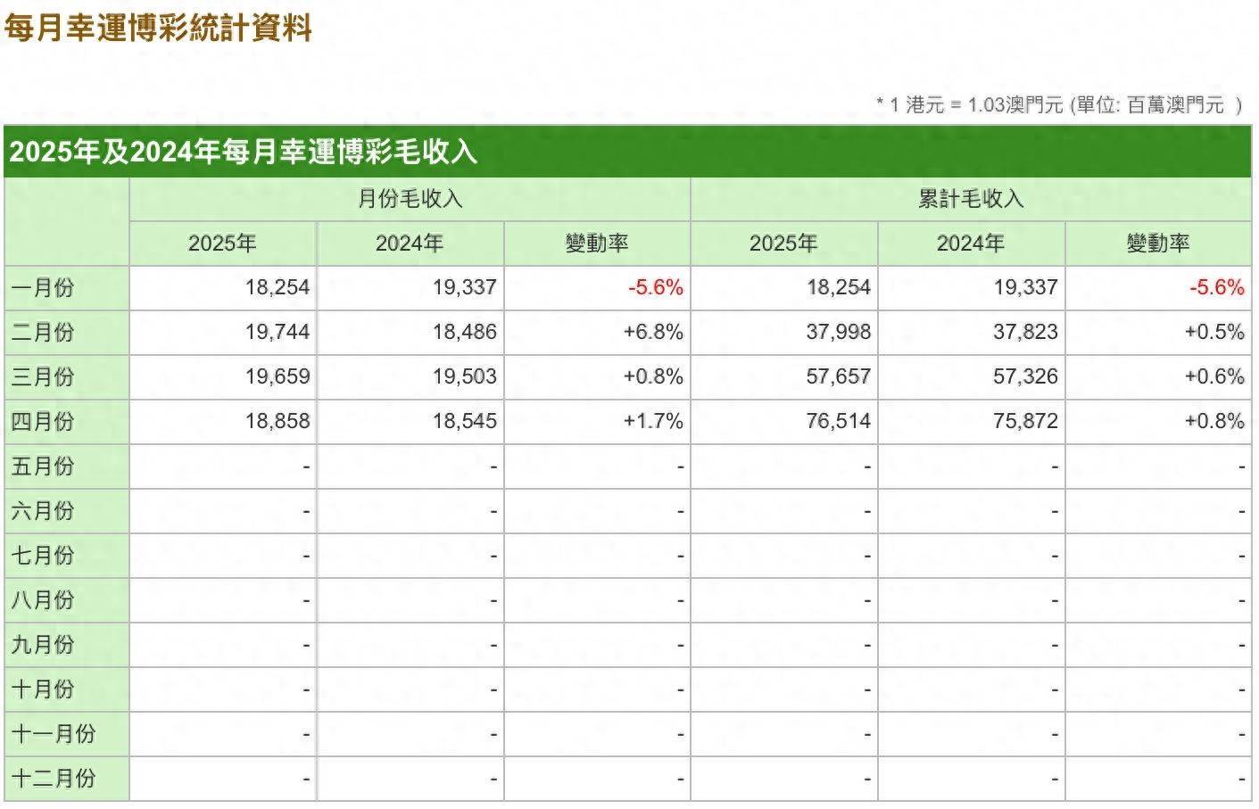 智通财经APP获悉配资炒股股,5月1日,澳门博彩监察协调局公布配资炒股股,今年4月份澳门幸运博彩毛收入188.58亿澳门元,按年升1.7%。今年前4个月澳门博彩毛收入累计达765.14亿澳门元,按年升0.8%。