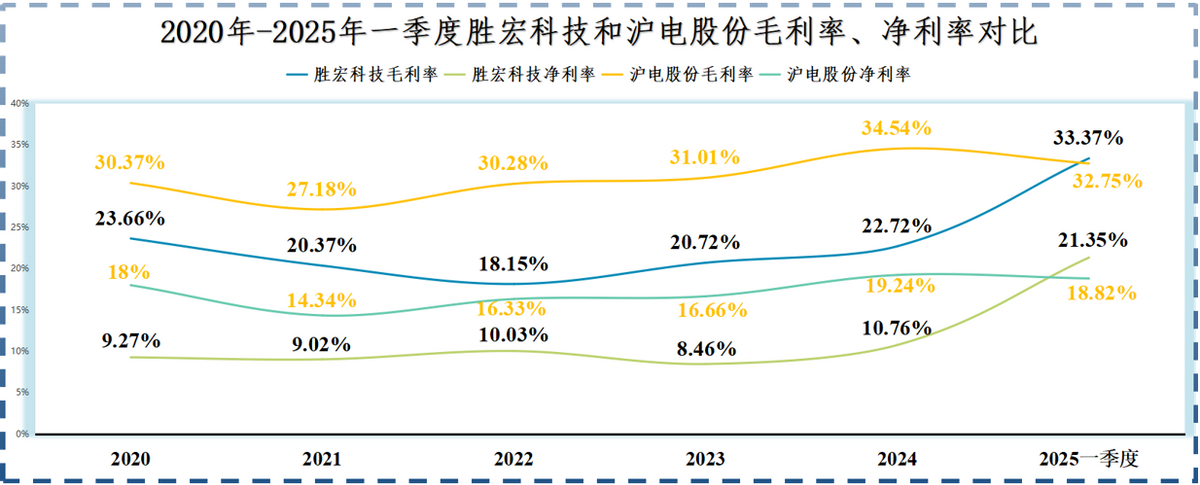 2024-2025年一季度,公司毛利率从22.72%上升到33.37%,净利率从10.76%上升到21.35%,均上升10个百分点左右。