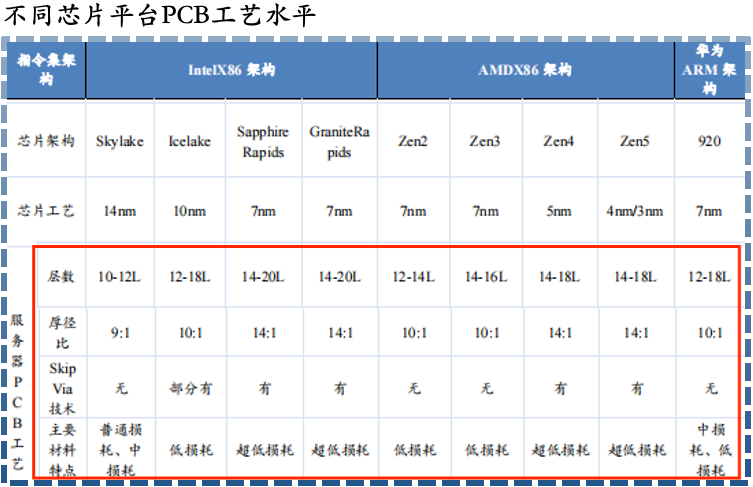以AI芯片为例,随着芯片平台升级,PCB的工艺水平也在相应提升,如层数增加、密度身高、损耗降低、厚径比变大等。