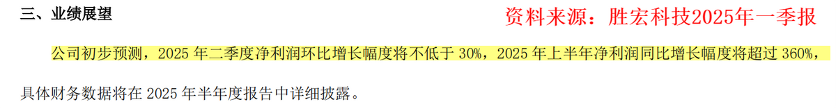 公司在2025年一季报中给出初步预测,2025年第二季度净利润环比增速将不低于30%,2025年上半年净利润同比增幅将超过360%。