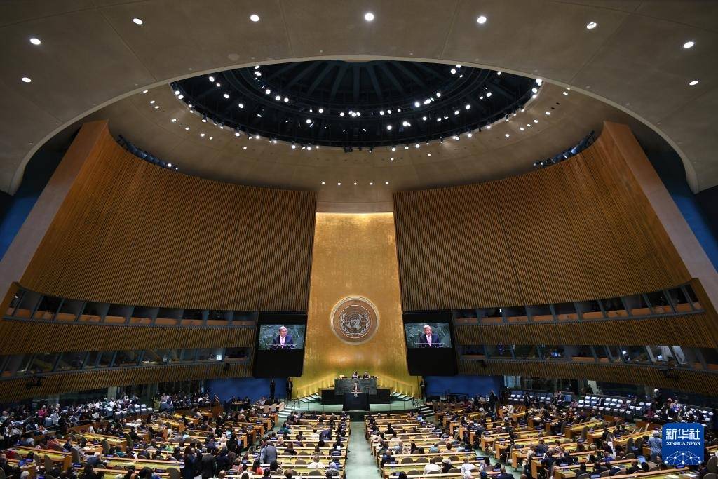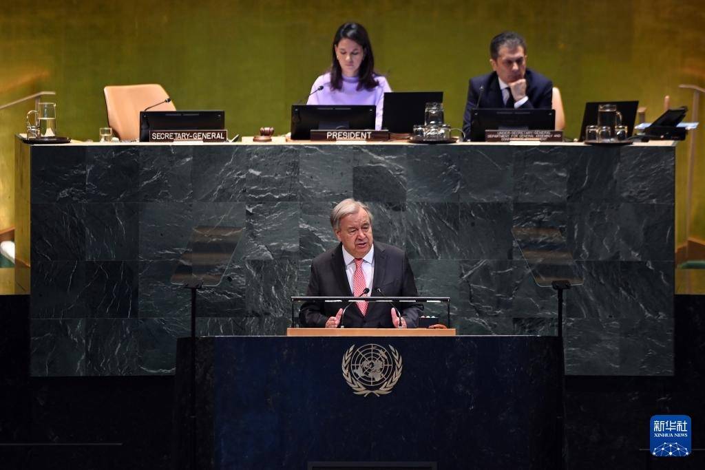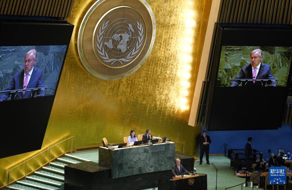 9月22日,在位于纽约的联合国总部,联合国秘书长古特雷斯在纪念北京世妇会30周年高级别会议上讲话。