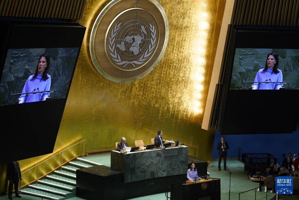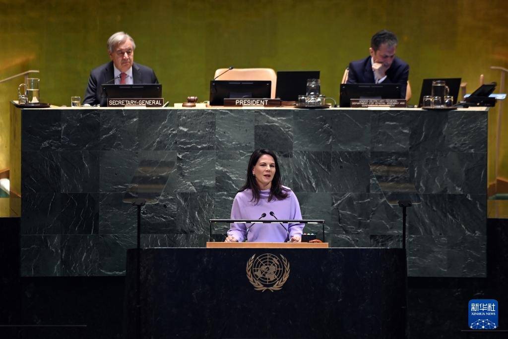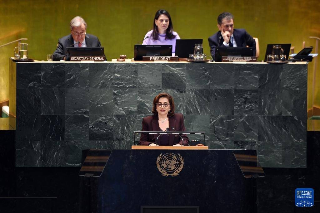 9月22日,在位于纽约的联合国总部,第80届联大主席贝尔伯克在纪念北京世妇会30周年高级别会议上讲话。