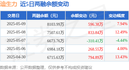 本站消息,5月9日,迪生力(603335)融资买入1606.56万元股票配资平台合法,融资偿还1010.32万元,融资净买入596.24万元,融资余额8103.85万元,近20个交易日中有11个交易日出现融资净买入。