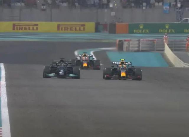 2021 年阿布扎比虽然维斯塔潘一度追到了汉密尔顿身后,但也无法超过,直到倒数第五圈拉蒂菲发生严重撞车引发安全车,而此时维斯塔潘进站换上软胎,安全车在 58 圈极具争议的决定下退出让比赛恢复,两人在最后一圈争夺冠军,最后维斯塔潘利用软胎优势超过汉密尔顿夺得该站冠军和年度总冠军。