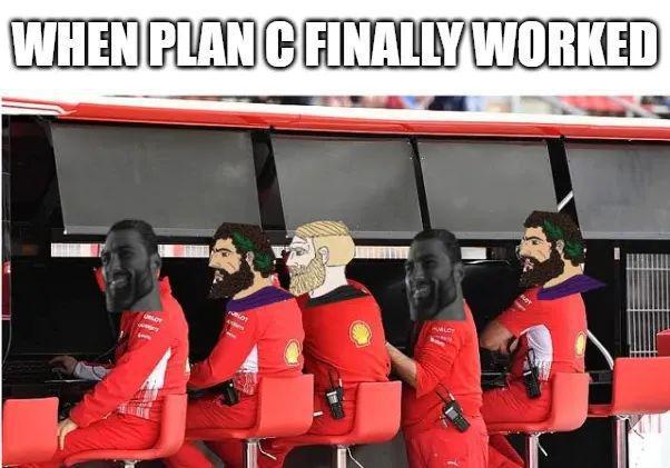 影片中为了展现海耶斯对比赛的理解能力,以及一些小把戏带来的戏剧冲突,增加了主流 AB 两套策略外的 Plan C。但是经常看 F1 的观众都知道,Plan C 可谓是法拉利的基操了,由于近年车不太好,加上前面说的经常在换胎时整活,导致法拉利经常被迫启用 Plan C。
