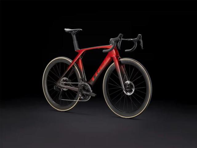 所以背景出现一辆公路车还挺合理的,开始一直只有轮胎和前叉,还一直在猜是什么型号,最后还是露出了真容——TREK Madone,标志性的洞洞太好认了,还是第七代,放在影射的 2023 年正是当年最火公路车。
