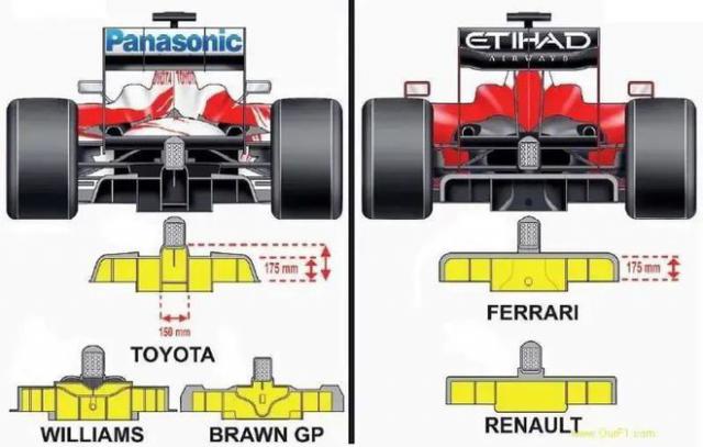 2009 年本田和布朗车队的日本工程师发现了 FIA 规则里有个漏洞,在尾椎下部和传统扩散器上部,扩展出新的空间,实际用途等于加大了扩散器的输出口,也就是俗称的双层扩散器,可使赛车每圈快上 0.5 到 1 秒。也正是这个秘密武器让布朗车队在本田因为经济危机退出 F1 后即使是举步维艰的情况下也最后夺得了 F1 总冠军,而后卖给奔驰成就了后来的奔驰王朝。
